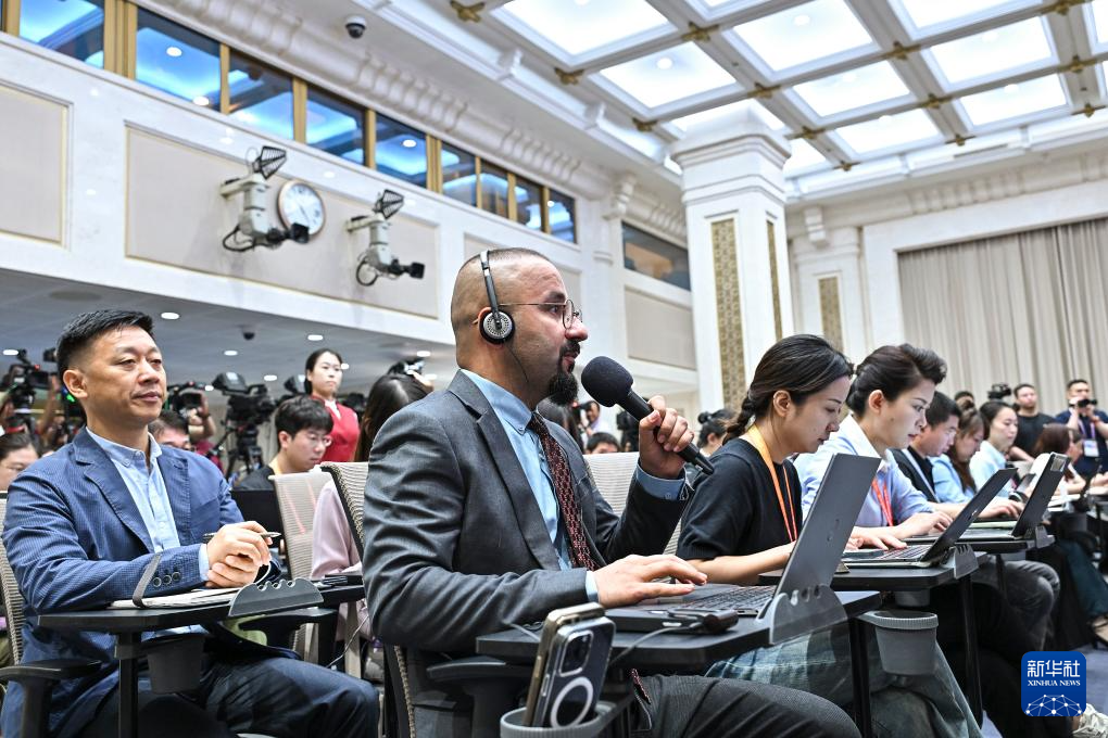 8月20日,國務(wù)院新聞辦公室在北京舉行新聞發(fā)布會,閱兵領(lǐng)導(dǎo)小組辦公室副主任、中央軍委聯(lián)合參謀部作戰(zhàn)局少將副局長吳澤棵,中國人民解放軍中部戰(zhàn)區(qū)閱兵指揮機構(gòu)辦公室常務(wù)副主任、政治工作部少將副主任徐貴忠介紹閱兵準備工作有關(guān)情況,并答記者問。這是記者在現(xiàn)場提問。新華社記者 李鑫 攝