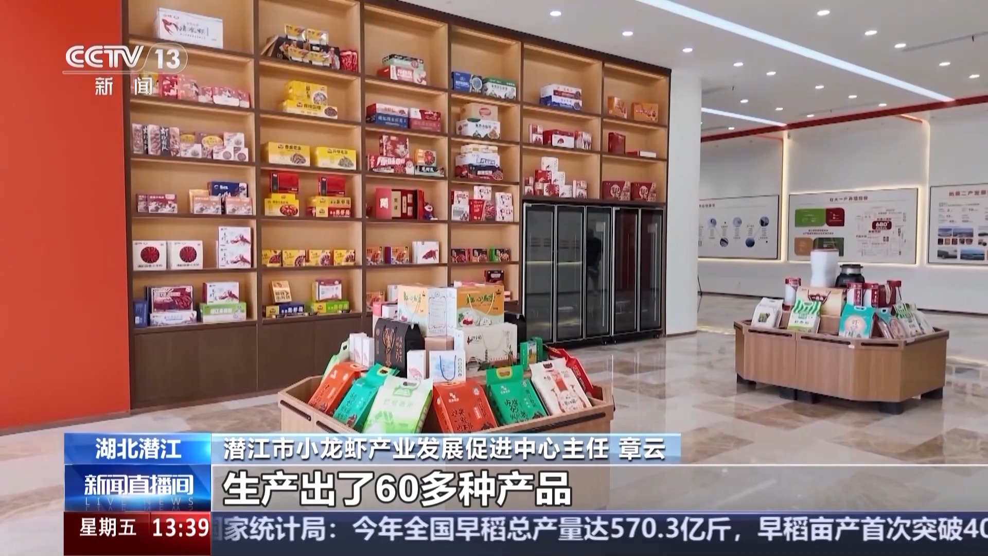 潛江市小龍蝦產(chǎn)業(yè)發(fā)展促進中心主任 章云:截至目前,潛江小龍蝦的規(guī)模以上加工企業(yè)共有19家,生產(chǎn)出了60多種產(chǎn)品,組成了小龍蝦產(chǎn)品矩陣,建立了涵蓋餐飲、食品、醫(yī)療等多領域的全產(chǎn)業(yè)鏈體系??梢哉f,從田間到餐桌,從國內(nèi)到國際,潛江將這小小的一只蝦“吃干榨凈”,綜合(年)產(chǎn)值已經(jīng)突破了870億。