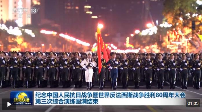 記者從中國人民抗日戰(zhàn)爭暨世界反法西斯戰(zhàn)爭勝利80周年紀(jì)念活動新聞中心獲悉,8月23日17時(shí)至8月24日5時(shí),北京天安門地區(qū)舉行了紀(jì)念中國人民抗日戰(zhàn)爭暨世界反法西斯戰(zhàn)爭勝利80周年大會第三次綜合演練。據(jù)介紹,這是一次全流程、全要素預(yù)演,也是紀(jì)念大會最后一次綜合演練,包括紀(jì)念大會儀式(含閱兵)、轉(zhuǎn)場、觀眾組織及應(yīng)急處置等各項(xiàng)內(nèi)容,重點(diǎn)檢驗(yàn)了各流程、各環(huán)節(jié)的銜接配合,為正式活動的成功舉辦打下堅(jiān)實(shí)基礎(chǔ)。