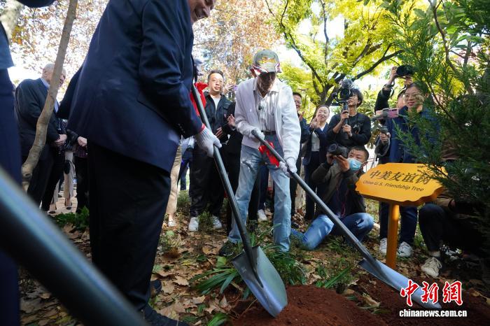 2023年11月3日,美國(guó)飛虎隊(duì)老兵哈里·莫耶在昆明與中方代表共植友誼樹(shù)。中新社記者 劉冉陽(yáng) 攝