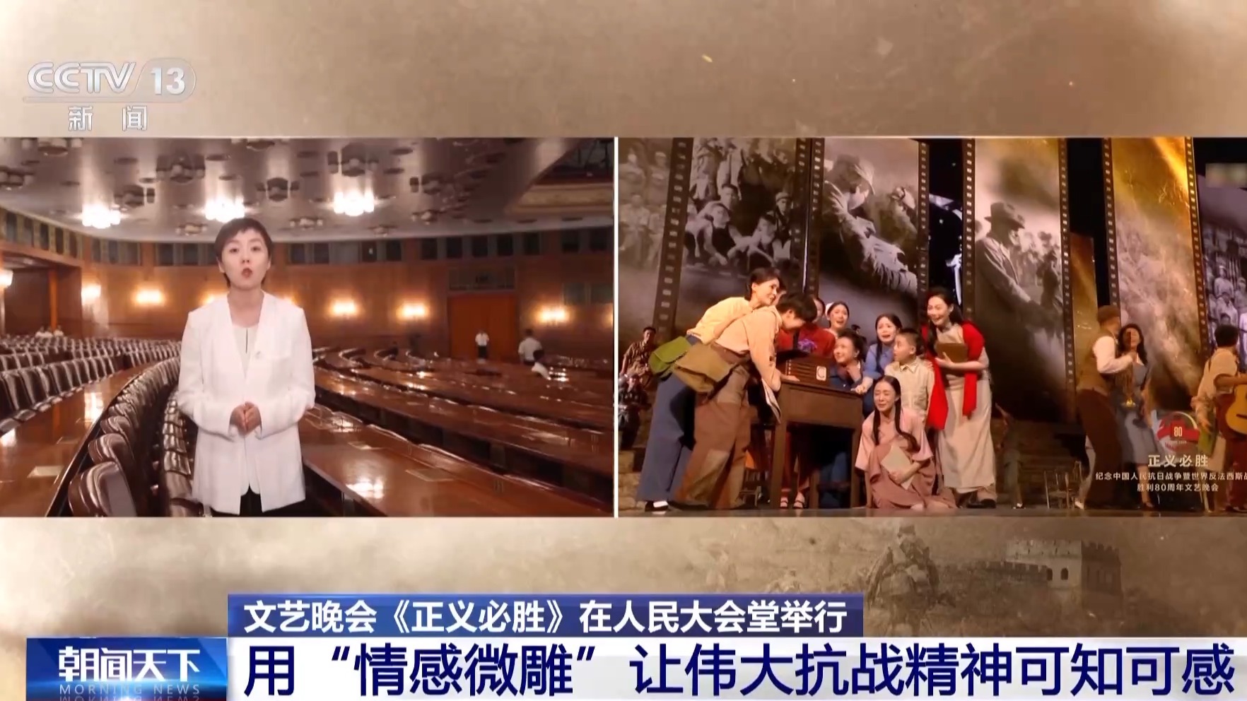 整場(chǎng)晚會(huì)用情景史詩(shī)劇的方式回顧了偉大的抗戰(zhàn)歷程,晚會(huì)有哪些亮點(diǎn)?看總臺(tái)記者的現(xiàn)場(chǎng)觀察。