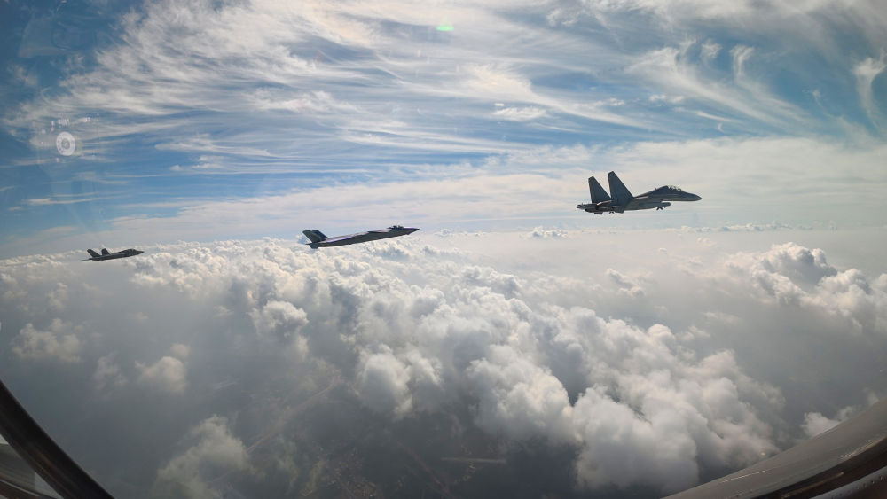 ↑這是殲擊機(jī)梯隊(duì)從北京城區(qū)上空飛過(guò)。