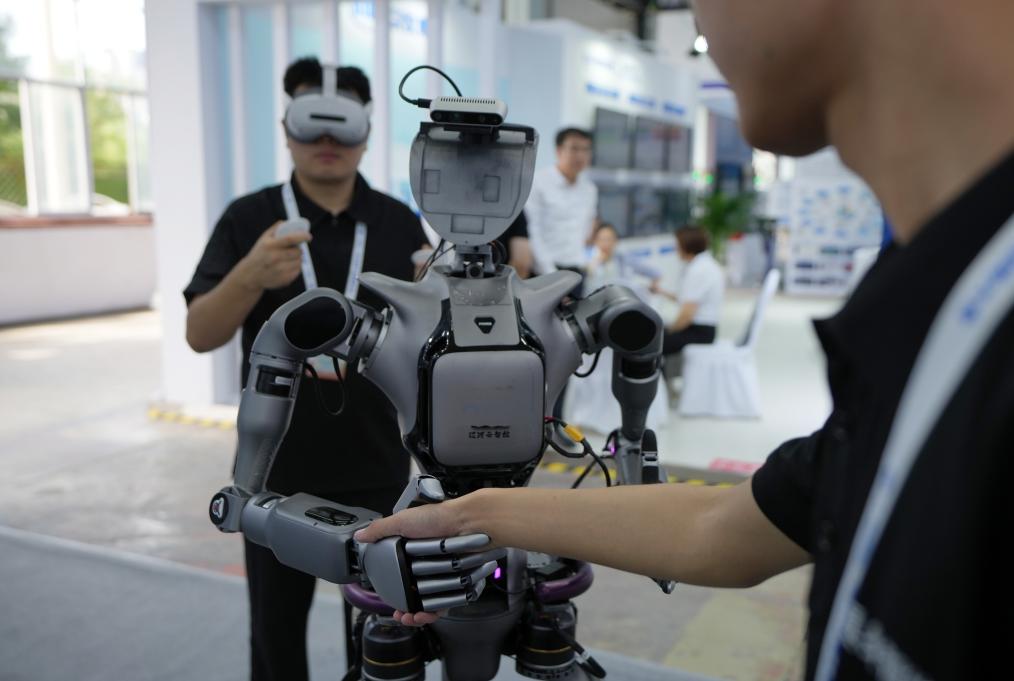 9月6日,在2025全球工業(yè)互聯(lián)網大會展覽區(qū),工作人員演示具身智能操作系統(tǒng)。新華社記者 李鋼 攝