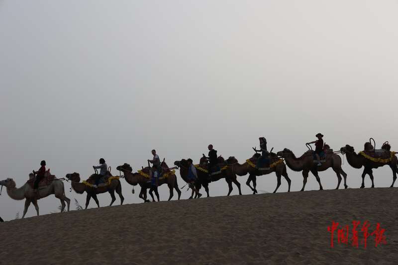 9月9日,新疆巴州尉犁縣羅布人村寨景區(qū),游客騎駱駝觀光。中青報·中青網(wǎng)記者 王鑫昕/攝