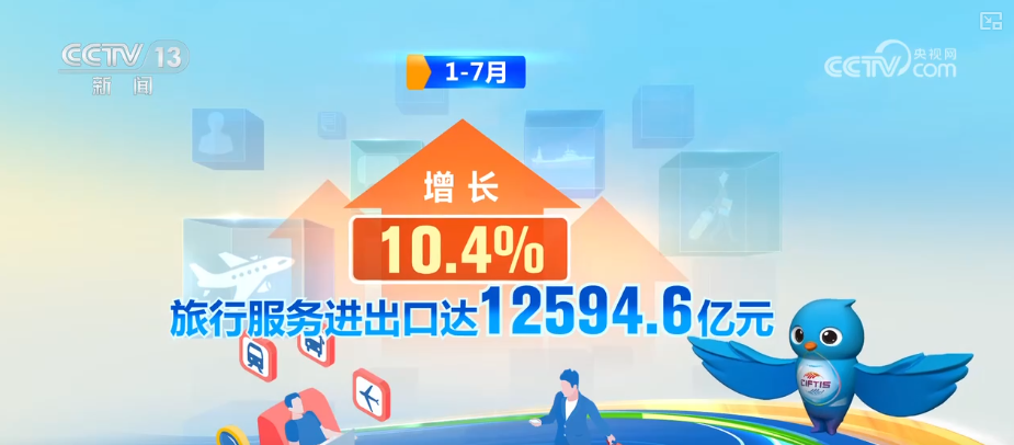 2025年,我國服務貿(mào)易穩(wěn)步增長,旅行服務出口增長最快。1—7月,旅行服務進出口達12594.6億元,增長10.4%。其中,出口增長62.9%、進口增長3.9%。