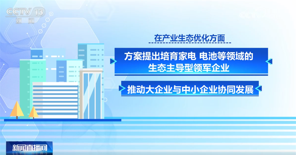 在產(chǎn)業(yè)生態(tài)優(yōu)化方面,方案提出培育家電、電池等領(lǐng)域的生態(tài)主導(dǎo)型領(lǐng)軍企業(yè),推動(dòng)大企業(yè)與中小企業(yè)協(xié)同發(fā)展;分批打造輕工業(yè)特色產(chǎn)區(qū),引導(dǎo)企業(yè)向中西部轉(zhuǎn)移,淘汰落后產(chǎn)能;通過(guò)產(chǎn)融合作、知識(shí)產(chǎn)權(quán)質(zhì)押貸款等方式,培育世界一流企業(yè)和專精特新“小巨人”企業(yè)。