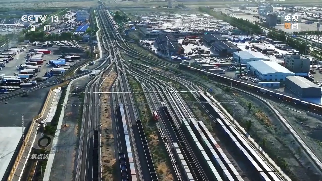 今天的新疆,早已不是封閉偏遠(yuǎn)的西北邊陲,而是向西開(kāi)放的前沿和服務(wù)國(guó)家新發(fā)展格局的戰(zhàn)略支點(diǎn),它擁有5700公里邊境線(xiàn),19個(gè)對(duì)外開(kāi)放的口岸。在邊境口岸城市霍爾果斯,如今平均一小時(shí)就有一列滿(mǎn)載的列車(chē)出入境。從2016年,第一列中歐班列過(guò)境霍爾果斯站,不到10年,已有超過(guò)47000列中歐(中亞)班列經(jīng)過(guò)。