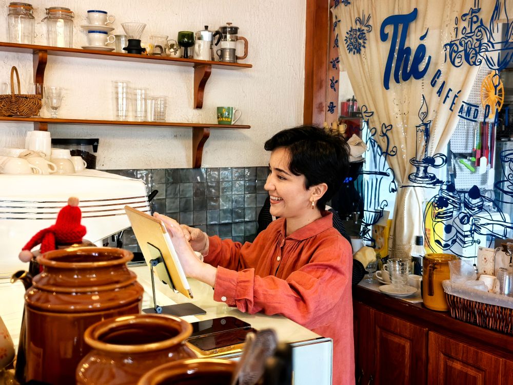 9月18日,烏魯木齊市“一個(gè)咖啡店”老板耐菲絲·地力夏提在為顧客點(diǎn)單。新華社記者 賀小童 攝