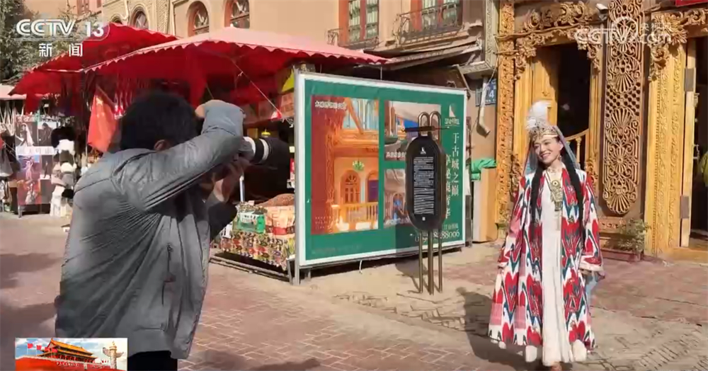 在新疆喀什古城景區(qū),這幾天每天都舉行開(kāi)城儀式,迎接來(lái)自全國(guó)各地的游客。古城街巷里更是掛滿了國(guó)旗,讓人們感受到濃濃的國(guó)慶氛圍。景區(qū)人氣火爆也帶來(lái)商業(yè)機(jī)遇,身著民族傳統(tǒng)服飾的游客隨處可見(jiàn),旅拍攝影師則在一旁記錄。
