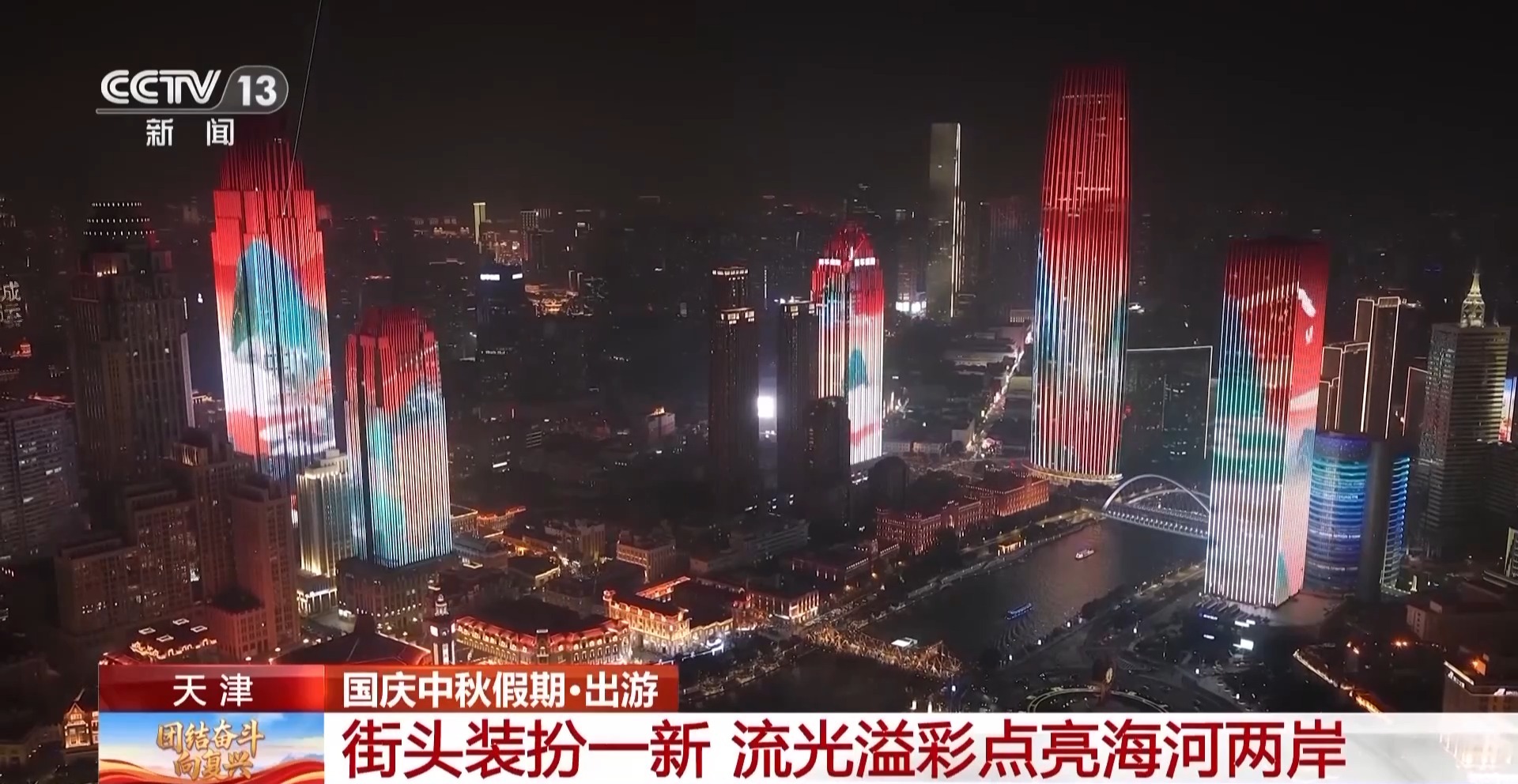 為慶祝國慶,天津街頭裝扮一新。1.8萬面國旗裝點城市街道,1.7萬多個花箱花籃鮮花盛開,80個新建提升的口袋公園全面開放,各個綠化節(jié)點、美麗街角裝扮一新,處處洋溢著喜慶祥和的節(jié)日氛圍。同時,天津還對海河夜景燈光秀進行了升級,打造國慶主題創(chuàng)意燈光秀。燈光秀既展現(xiàn)了長城、黃河、長江等祖國壯麗風(fēng)光,也呈現(xiàn)了天津七里海濕地、盤山秋色等本地美景,一派喜氣祥和。
