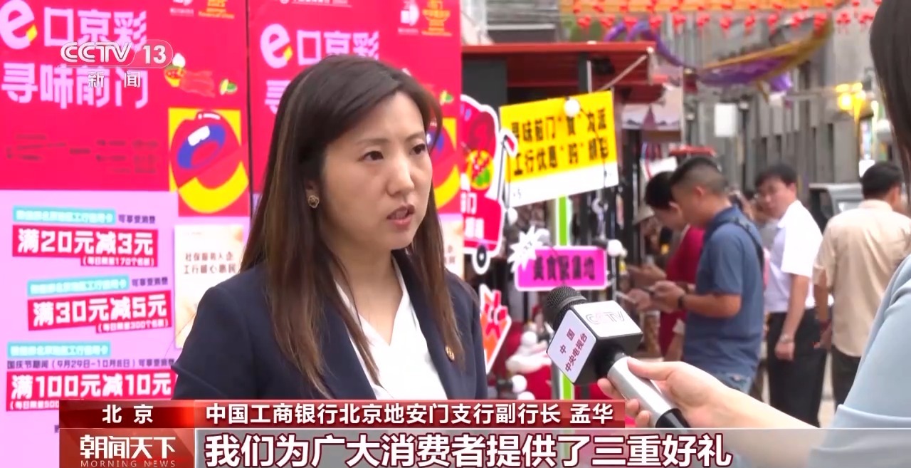 中國工商銀行北京地安門支行副行長 孟華:我們?yōu)閺V大消費者提供了三重好禮,除了傳統(tǒng)的消費滿減活動以外,我們還疊加了數(shù)字人民幣的優(yōu)惠支付,同時還設(shè)計了數(shù)字人民幣的打卡活動。