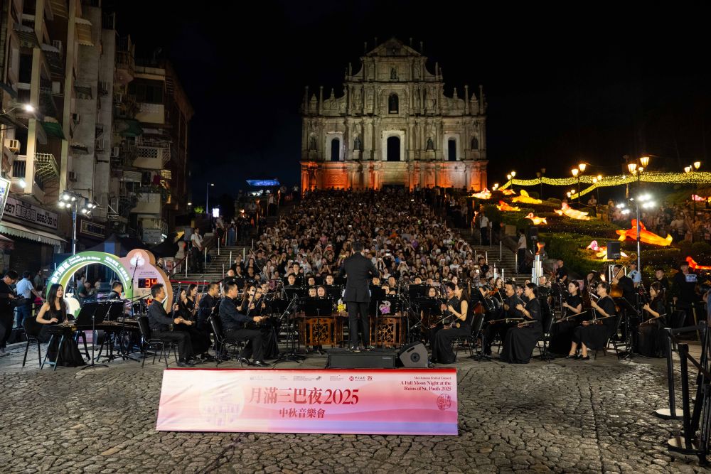 10月6日拍攝的在大三巴牌坊舉行的“月滿三巴夜2025”中秋音樂會。新華社發(fā)(張金加攝)