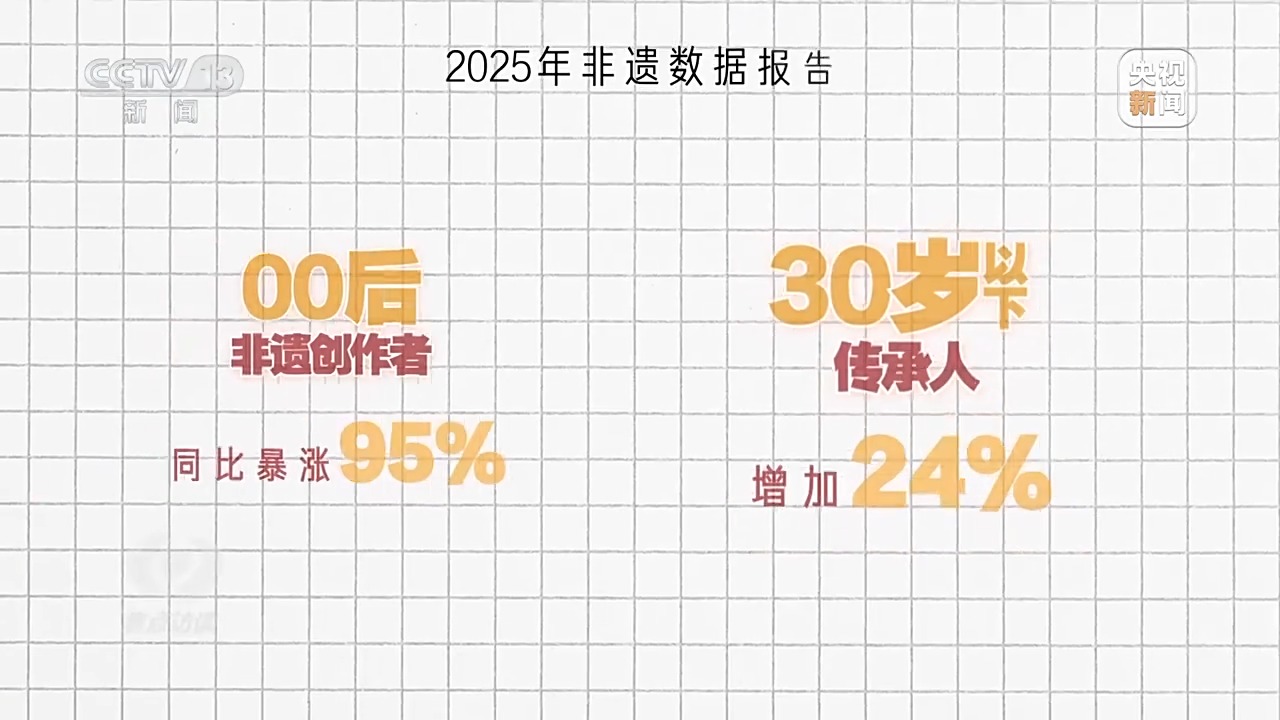 也許有人覺(jué)得這些故事太個(gè)別,所以我找到了某短視頻平臺(tái)今年的非遺數(shù)據(jù)報(bào)告,也很能說(shuō)明問(wèn)題。報(bào)告中提到,一年來(lái)00后非遺創(chuàng)作者同比暴漲95%,30歲以下傳承人增加24%。越來(lái)越多年輕人主動(dòng)扛起了傳承的擔(dān)子。為啥他們?cè)敢庖活^扎進(jìn)這些“老行當(dāng)”?我找到了幾位新生代代表性傳承人,試著解開(kāi)這份“偏愛(ài)”背后的密碼。