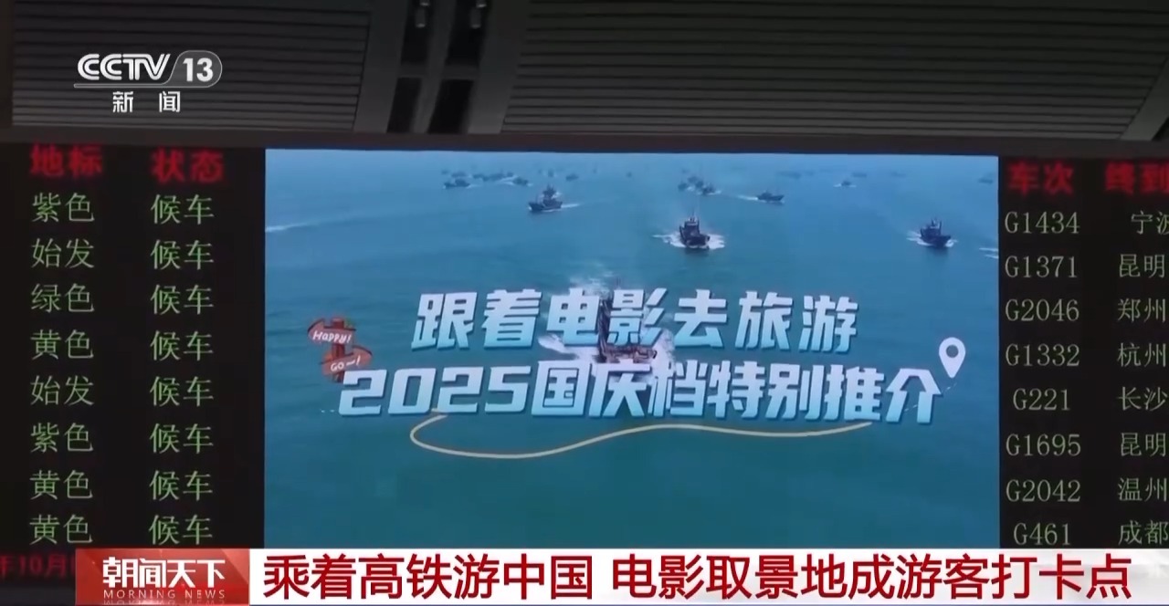據(jù)了解,為持續(xù)推動(dòng)“電影+”業(yè)態(tài)創(chuàng)新,國(guó)慶期間,在全國(guó)3000多個(gè)鐵路客運(yùn)車站、4200多組動(dòng)車組列車的車廂電視上,集中播放《跟著電影去旅游》等影旅主題推介視頻,不僅展示熱門電影取景地,還聯(lián)動(dòng)多條鐵路旅游專線提供出行指引,邀請(qǐng)旅客體驗(yàn)“鐵路+電影”的出行新方式。