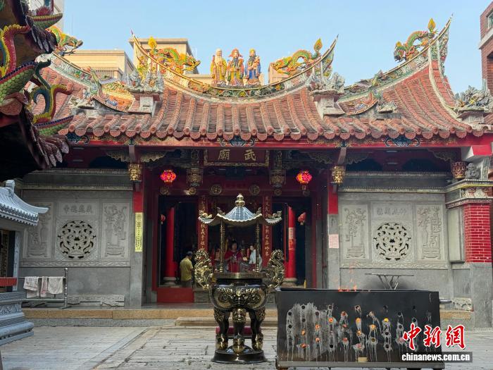 離“清金門鎮(zhèn)總兵署”不遠(yuǎn),后浦武廟內(nèi)鼓樂喧天,本地民眾正為月下老人舉行誕辰醮慶。