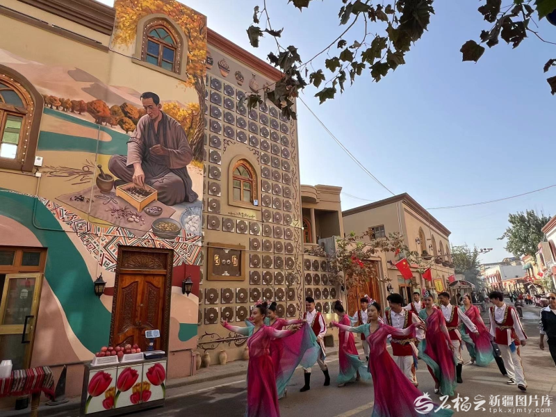 在墨玉縣,老城景區(qū)的“墻上博物館”成為游客感受文化、寄托情思的好去處。游客陳南方與愛(ài)人特意來(lái)到老街,在“在這里,向祖國(guó)致敬”的打卡點(diǎn)前合影留念?!霸缏?tīng)說(shuō)墨玉是絲路南道的重要節(jié)點(diǎn),這面墻把古商隊(duì)穿越沙漠的場(chǎng)景畫(huà)活了,再想想現(xiàn)在的發(fā)展,真有種‘古今對(duì)話’的感覺(jué)!”來(lái)自烏魯木齊市的游客張斌站在《絲路駝?dòng) 穳η埃贿吪恼找贿吀锌?/p>