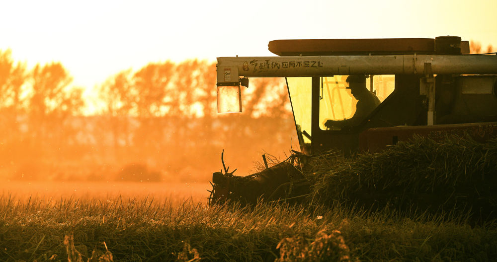 10月3日,農(nóng)戶在北大荒集團(tuán)黑龍江八五六農(nóng)場(chǎng)有限公司第五管理區(qū)搶收水稻(無人機(jī)照片)。新華社發(fā)(黃永興攝)