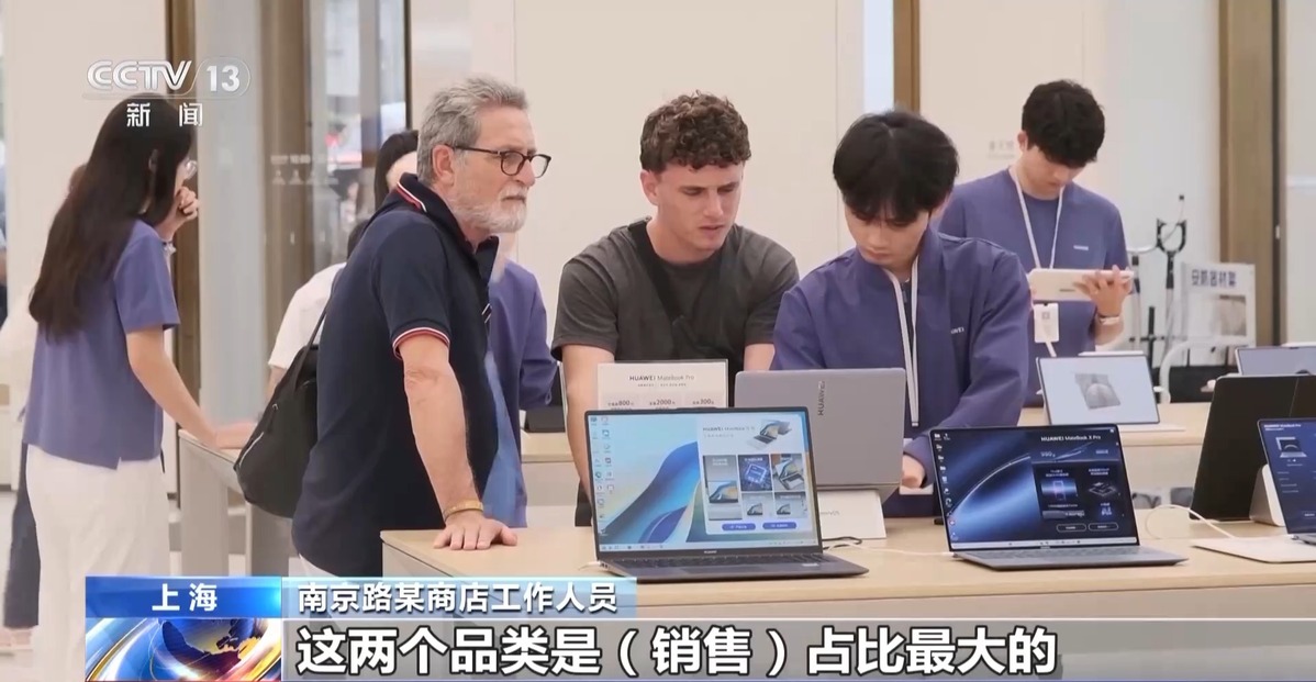 南京路某商店工作人員:外國顧客特別喜歡音頻類和智能手表類產(chǎn)品,這兩個品類是銷售占比最大的。