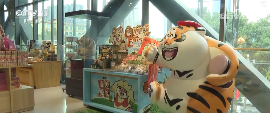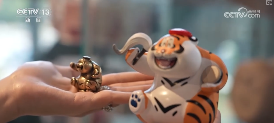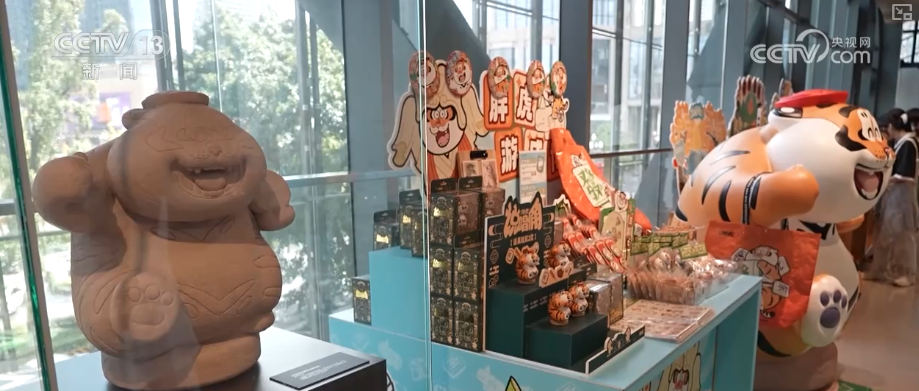 成都博物館文化創(chuàng)意產(chǎn)業(yè)部工作人員伍娜介紹,在整個文創(chuàng)行業(yè)發(fā)展起來后,文博行業(yè)也進行了一些大膽的嘗試,包括和一些藝術(shù)家、非遺的傳承人,以及現(xiàn)在比較受年輕人歡迎的IP來進行一些跨界的合作。他們想了一個創(chuàng)意點,就是在“胖虎”的手上拿了很多具有成都代表性的元素,比如說茶館文化就拿了茶壺。