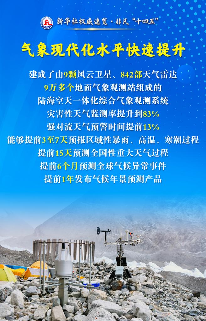 氣象事業(yè)是科技型、基礎(chǔ)性、先導(dǎo)性社會公益事業(yè)。10月11日,中國氣象局局長陳振林在國新辦舉行的“高質(zhì)量完成‘十四五’規(guī)劃”發(fā)布會上說,氣象部門加快推進(jìn)氣象科技能力現(xiàn)代化和社會服務(wù)現(xiàn)代化,努力構(gòu)建科技領(lǐng)先、監(jiān)測精密、預(yù)報精準(zhǔn)、服務(wù)精細(xì)、人民滿意的現(xiàn)代氣象體系。跟隨海報,一起了解。