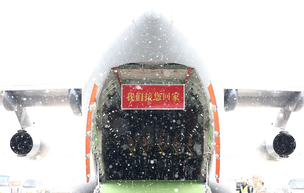 2023年11月23日,第十批在韓中國人民志愿軍烈士遺骸抵達(dá)沈陽桃仙國際機場。新華社記者 曹燦 攝
