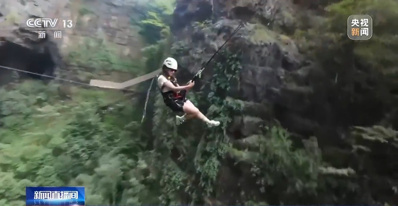 除了用丑萌可愛的物品彰顯個性,旅行“必出片兒”也成為當(dāng)下很多年輕人表達(dá)自我的一種方式。今年暑期開始,貴州開陽縣猴耳天坑景區(qū)異常火爆。這里是一處典型的巖溶漏斗,直徑約300米,坑深約280米,依托獨(dú)特的地質(zhì)奇觀,當(dāng)?shù)亻_發(fā)出了蹦極、大秋千、探洞等多種極限運(yùn)動。而就在如此驚險刺激的體驗之下,也要出片!