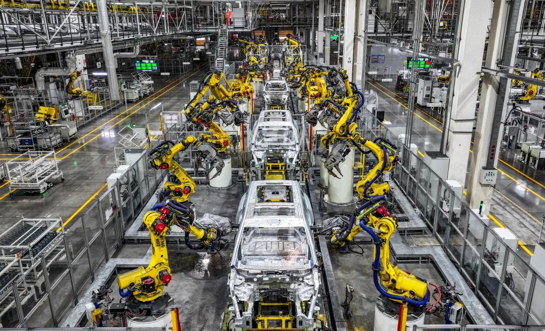位于重慶市兩江新區(qū)的賽力斯汽車超級工廠拍攝的自動化生產作業(yè)現(xiàn)場。 新華社記者 王全超 攝