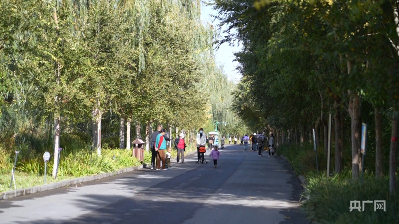 市民在濕地公園散步 (央廣網(wǎng)記者丁安 攝)
