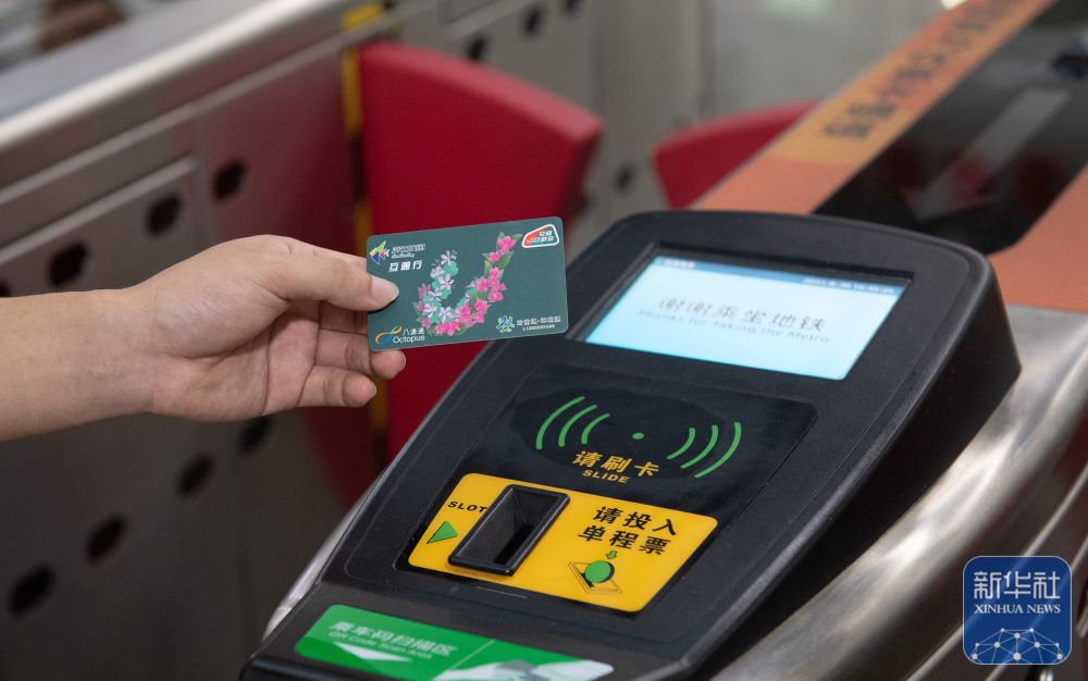 ↑在深圳福田站地鐵閘機出口,用戶持深港互通行卡準(zhǔn)備刷卡(2023年8月30日攝)。新華社記者 毛思倩 攝