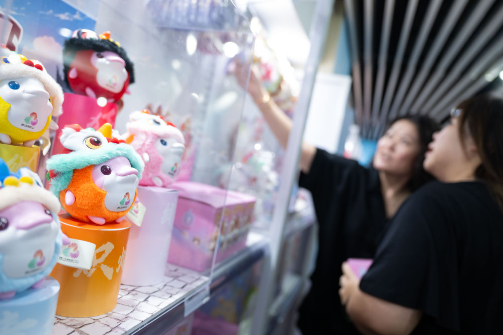8月1日,市民在十五運(yùn)會(huì)和殘?zhí)貖W會(huì)澳門賽區(qū)官方特許商品零售店選購。新華社發(fā)(張金加攝)