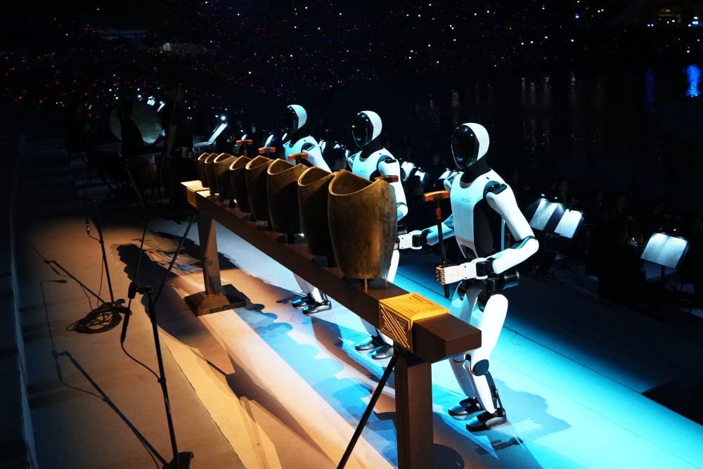 開幕式表演中的這一幕給觀眾留下深刻印象——三個工業(yè)人形機(jī)器人敲響千年前的中國古代樂器青銅句鑃,展開了一場未來與歷史的對話。談到此創(chuàng)意,十五運(yùn)會開幕式藝術(shù)總監(jiān)陳維亞表示:“這一點(diǎn)我們很自信,抓得好、抓得精彩、抓得有特色?!?/p>