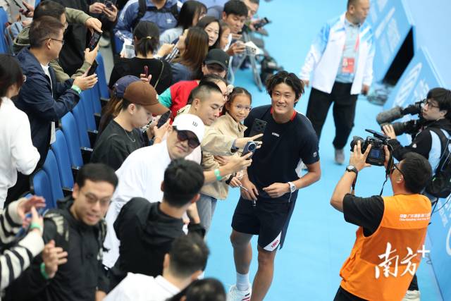 11月3日,大量球迷來到全運會賽場,與球員張之臻在賽后熱情互動。許舒智 攝