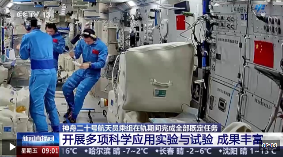 在軌期間,神舟二十號展開了覆蓋空間生命科學(xué)、微重力基礎(chǔ)物理、空間材料科學(xué)、航天醫(yī)學(xué)、航天新技術(shù)等領(lǐng)域,取得了階段性成果。典型成果包括:
