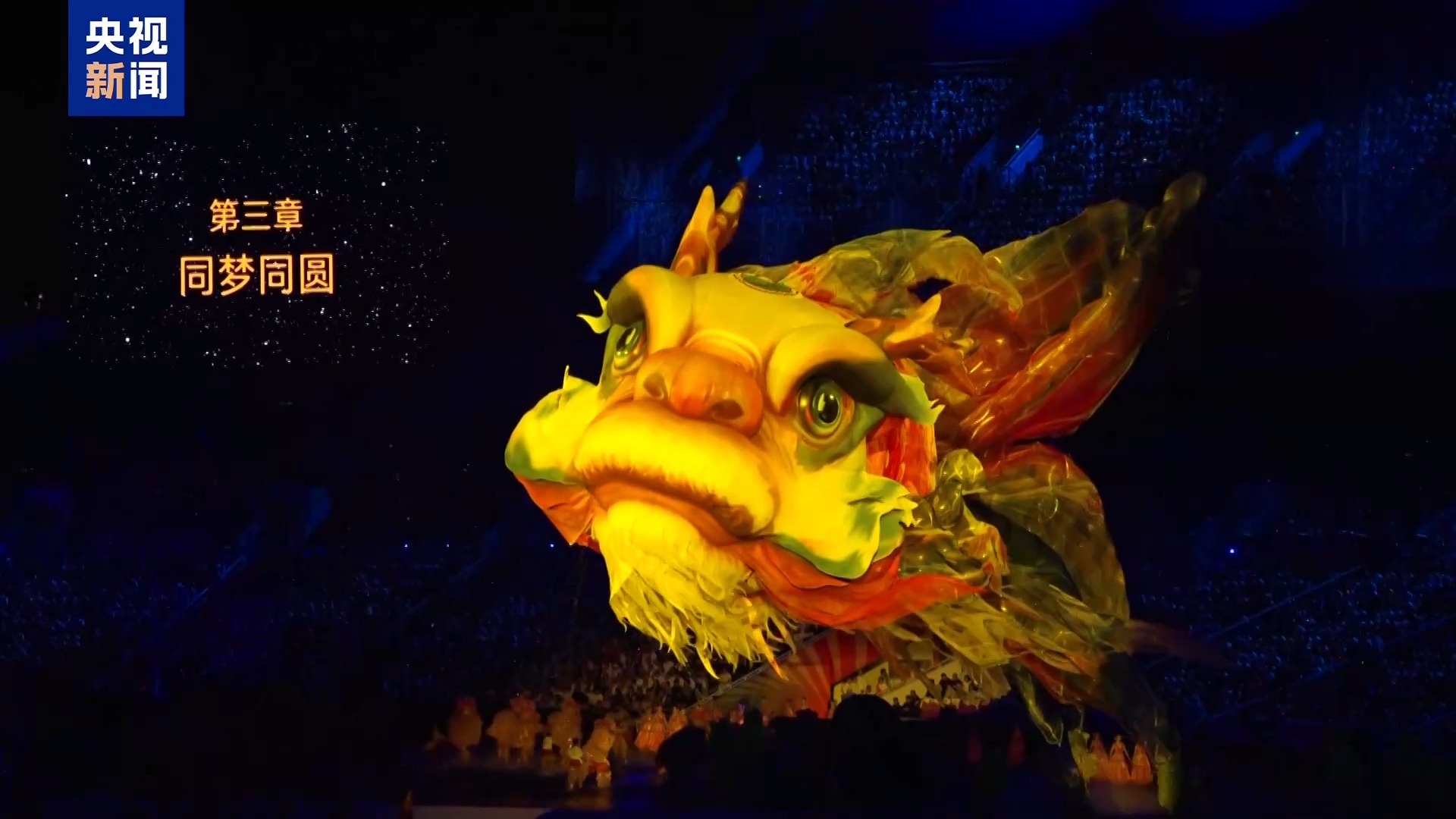 十五運會開幕式上,操控這條刷爆全網(wǎng)的巨獸鰲魚的,不是無人機,也不是塔吊,更不是全息投影,它是以竹子為骨架,配上氣囊、彩繪,再用傳統(tǒng)風箏線操控,回歸千年非遺本真。鰲魚的全身128片變色鱗片流光溢彩,龍須隨風自然飄灑,飄逸靈動,如夢似幻。