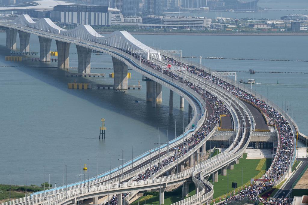 2024年9月29日,市民在澳門(mén)大橋上參與健步行。