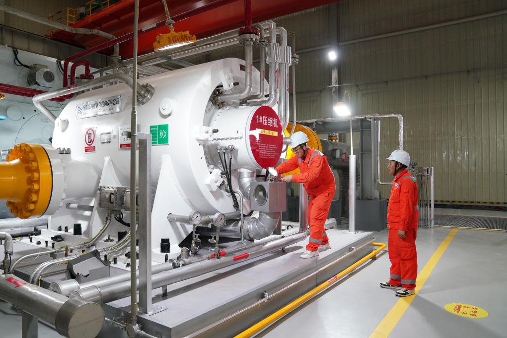 2025年7月9日,在“北氣南下”能源大通道黑河首站壓縮機房,綜合維修工人對壓縮機關(guān)鍵儀表進行維修作業(yè)。新華社記者 王松 攝