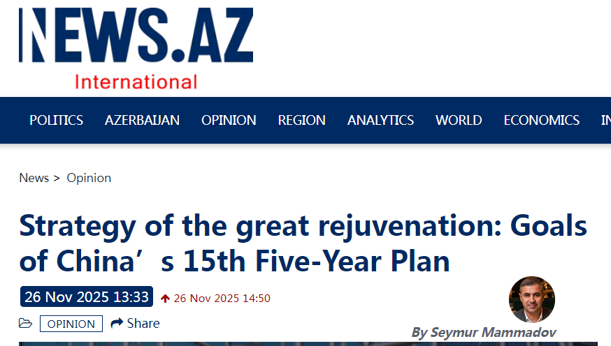 近日,國(guó)際專家俱樂部EurAsiaAz主任塞繆爾·馬邁多夫在阿塞拜疆“News.Az”國(guó)際新聞網(wǎng)發(fā)表文章稱,在全球進(jìn)入“戰(zhàn)略不確定時(shí)代”的背景下,中國(guó)謀定而后動(dòng),以罕見的長(zhǎng)遠(yuǎn)戰(zhàn)略眼光和堅(jiān)定的執(zhí)行力,給出了截然不同的答案。