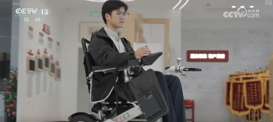 在杭州西湖區(qū),工作人員正在對眼前這款智能輪椅進行技術(shù)升級。結(jié)合失能老人手腳行動不便的痛點,這款輪椅搭載了深度相機和智能機械臂,通過內(nèi)置的AI算法,使用者只需和平常一樣坐在上面,簡單用語言表達需求,輪椅就可以判斷路線,智能移動。