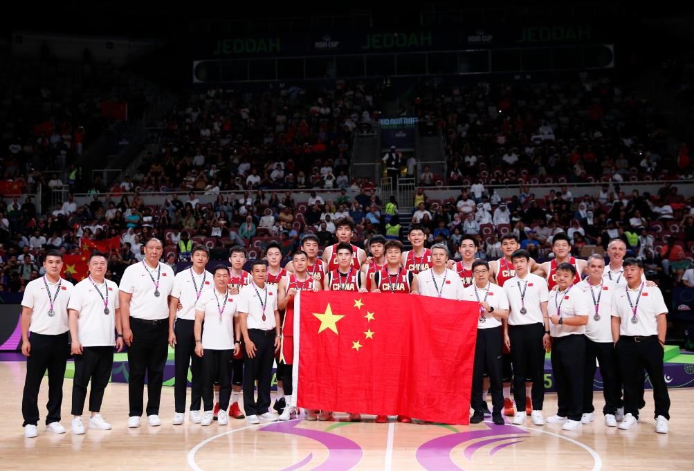 8月17日,在2025國(guó)際籃聯(lián)亞洲杯決賽中,中國(guó)隊(duì)獲得亞軍。圖為中國(guó)隊(duì)在頒獎(jiǎng)儀式后合影。新華社記者 王東震 攝
