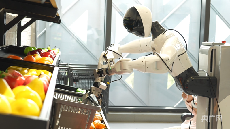 人形機(jī)器人在零售應(yīng)用場(chǎng)景訓(xùn)練(央廣網(wǎng)記者鄧子依 攝)