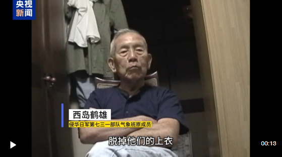 第十二個南京大屠殺死難者國家公祭日前夕,侵華日軍第七三一部隊(簡稱731部隊)罪證陳列館公布一段長38分鐘的視頻證言。731部隊原隊員西島鶴雄揭露了這支部隊曾利用氣象數(shù)據(jù)實施細菌播撒和凍傷活體實驗。