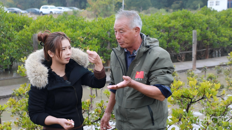 吳昌根女兒今年加入保護(hù)紅樹林隊伍,圖為吳昌根在給女兒講解紅樹林育苗知識(央廣網(wǎng)發(fā) 羅凱文 攝)