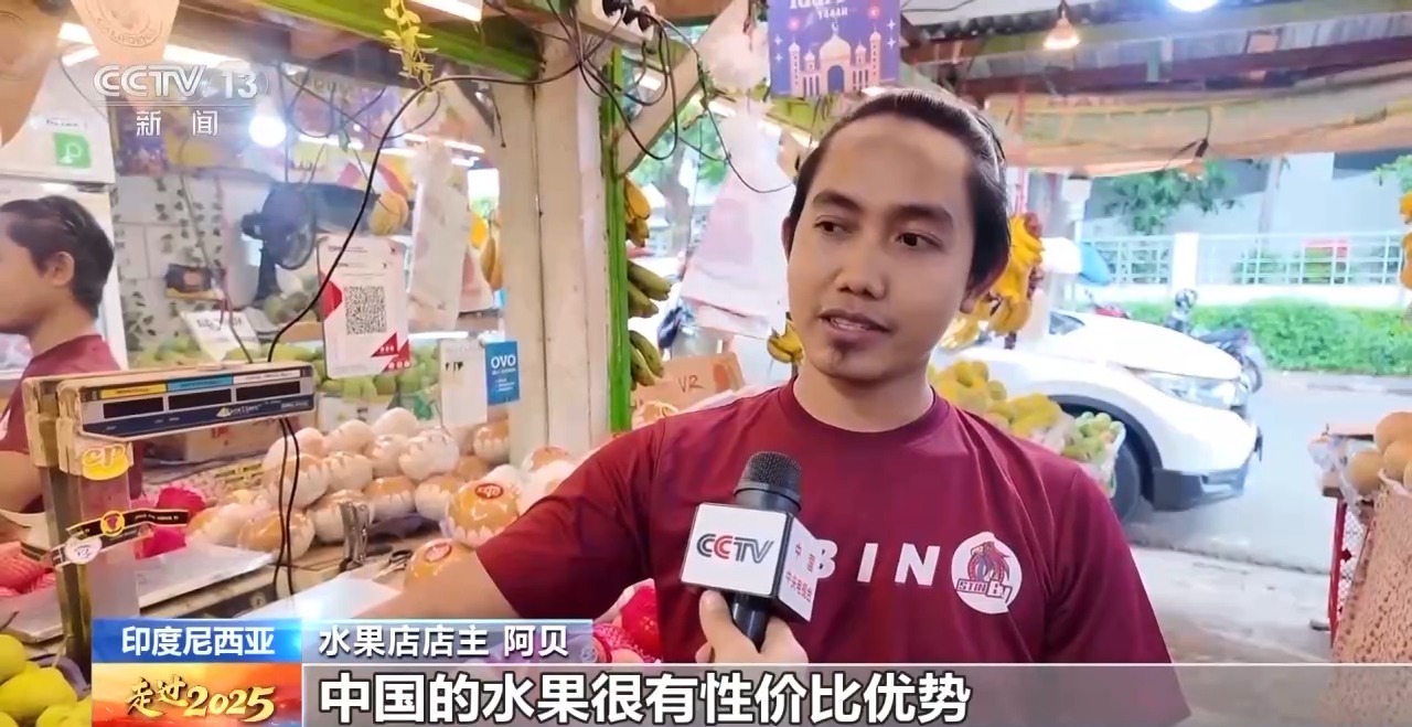 在印度尼西亞雅加達(dá)的街頭,近些年隨著中國—東盟水果貿(mào)易的進(jìn)一步開放,市場(chǎng)上也有了一些新變化。如今,除了在大型的超市和連鎖超市里面能夠看到來自中國的水果之外,路邊隨機(jī)的水果店,也有不少中國元素。