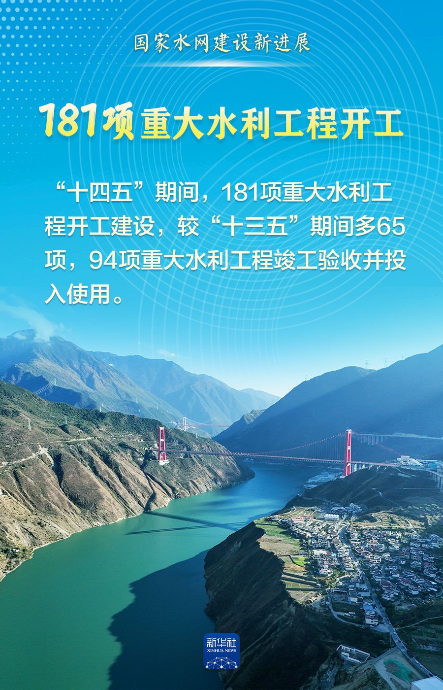 江河安瀾,治水興邦。“十四五”期間,全國(guó)完成水利建設(shè)投資5.68萬(wàn)億元、181項(xiàng)重大水利工程開工建設(shè)、國(guó)家水網(wǎng)覆蓋范圍占國(guó)土面積的比例達(dá)80.3%……一項(xiàng)項(xiàng)豐碩成果,既勾勒出清水綠岸、魚翔淺底的生態(tài)畫卷,更織密守護(hù)萬(wàn)家燈火的水安全保障網(wǎng),為經(jīng)濟(jì)社會(huì)高質(zhì)量發(fā)展注入強(qiáng)勁動(dòng)能。
