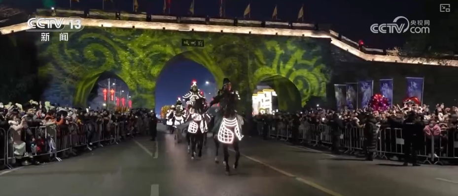 更有2026架無(wú)人機(jī)騰空而起,勾勒出“萬(wàn)馬奔騰”“鳳凰展翅”光影長(zhǎng)卷,讓游客驚嘆。還有為古城墻披上斑斕外衣的荊風(fēng)楚韻燈光秀,讓大家賞心悅目。光影流轉(zhuǎn)間,放佛歷史與現(xiàn)代隔空對(duì)話(huà)。