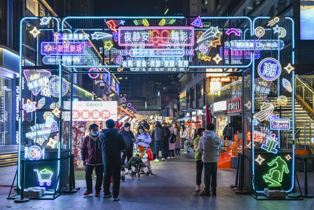這是1月7日在上海市靜安區(qū)吳江路拍攝的夜間市集現(xiàn)場。新華社記者陳浩明 攝