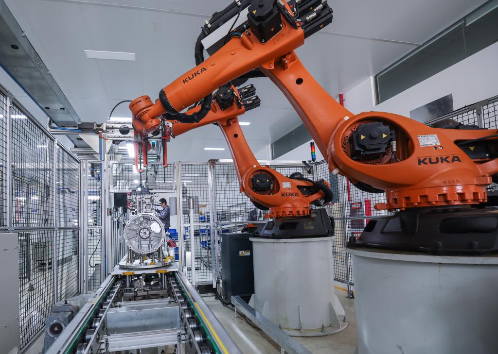 在位于金華市金東區(qū)一家公司的生產(chǎn)車間內(nèi),流水線上正在加工新能源汽車的智能增程器。新華社記者 徐昱 攝