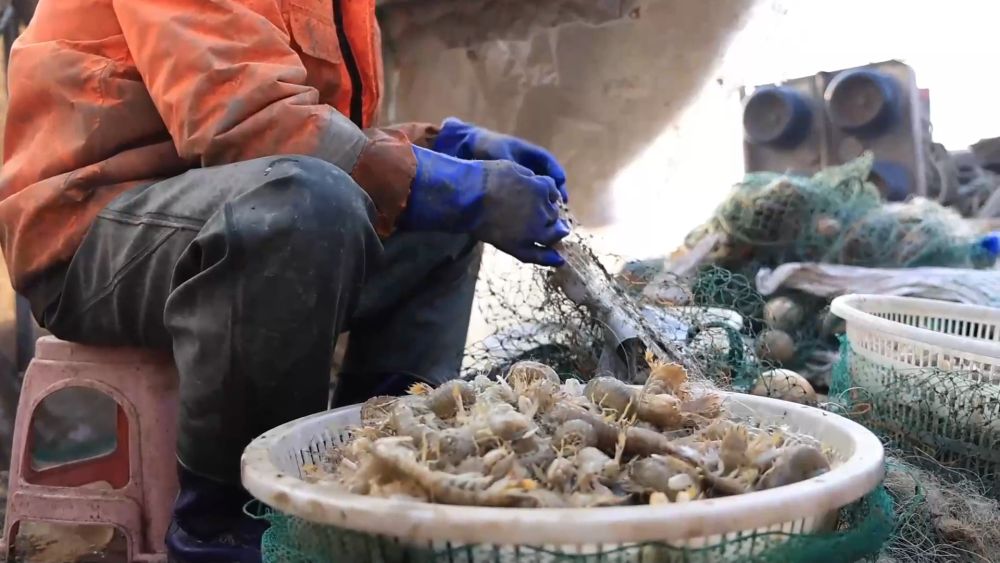 琵琶蝦因身體形狀似琵琶而得名,在渤海灣地區(qū)廣泛分布,是當(dāng)?shù)刂匾暮.a(chǎn)資源。在渤海灣畔的山東濱州無(wú)棣縣,漁民迎來一年中重要的增收期,一場(chǎng)“向海要鮮”的琵琶蝦冬捕作業(yè)火熱展開。