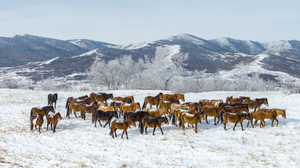近日,在銀裝素裹的內(nèi)蒙古克什克騰旗