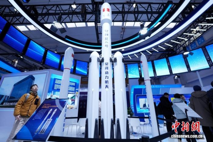 圖為觀眾在星河動力航天展館了解可重復(fù)使用液體運(yùn)載火箭模型。 中新社記者 張祥毅 攝
